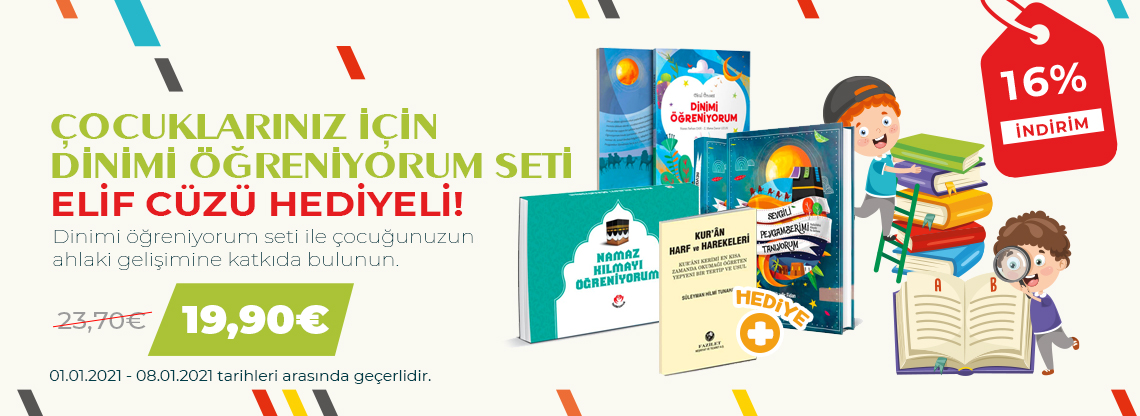 Ebu'l Fâruk Süleyman Hilmi TUNAHAN (K.S.) (SİLİSTREVÎ) Hazretlerinin yepyeni bir tertip ve usûlde yazmış olduğu Kur'ân Harf ve Harekeleri (Kur'ân-ı Kerim'i En Kısa Zamanda Okumayı Öğreten Yepyeni Bir Tertip ve Usul) eserimizle 7'den 70'e her Müslüman'ın kolayca ve çok kısa bir zamanda Kur'ân harflerini ve harekelerini öğrenmesi ve kısa sürede Kur'ân-ı Kerim'i okumaya başlaması mümkün olmaktadır.Dinimi Öğreniyorum Seti ile Çocucuğunuzun Ahlaki Gelişimine Katkıda Bulunun.